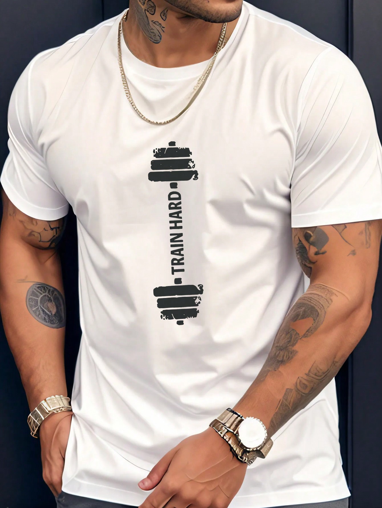 تيشرت رجالي للرياضة والخارج ذو طبعة جرافيك "تمرين الدمبل" بطراز قديم ، مناسب للارتداء اليومي العادي،
