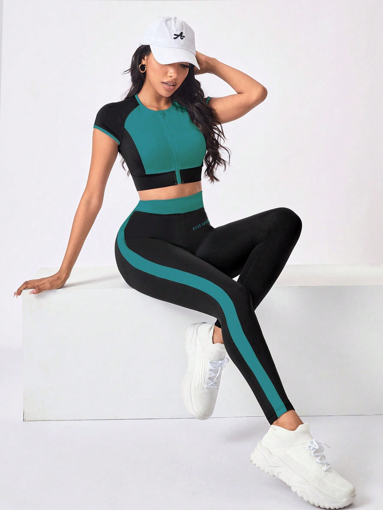 Cheerettes بدلة رياضية للنساء تتكون من توب قصير بأكمام راجلان وسحاب أمامي وسروال ضيق، مجموعة ملابس ر